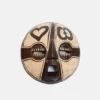 Ghanaian Round masks are typically made of wood and often feature a combination of geometric patterns, bold shapes, and symbolic elements. They are known for their association with well-being, harmony, and ancestral connections, often used in ceremonies and celebrations. The masks can vary in size and may incorporate intricate beadwork or other decorative elements like brass triangles. Here’s a more detailed look: Shape and Design: • Circular or round: The most defining characteristic is their rounded shape, which can vary in size and depth. • Geometric patterns: Many masks feature etched or carved geometric designs, sometimes arranged in a grid-like pattern. • Symbolic features: They often incorporate elements like slit eyes, protruding tongues, or abstracted facial features, each carrying specific symbolic meaning. Materials and Decoration: • Wood: The masks are primarily crafted from wood. • Beadwork: Some masks, particularly those from the Ashanti region, feature intricate beadwork in various colors. • Brass and other embellishments: Brass triangles, or other decorative elements, may also be incorporated. Cultural Significance: • Ceremonial use: Round masks are frequently used in ceremonies, festivals, and masquerade performances. • Spiritual connection: They are believed to facilitate communication with ancestors or spirits, bridging the gap between the physical and spiritual realms. • Symbolism of well-being: The masks often represent positive concepts like well-being, harmony, and prosperity. • Ashanti and Baule influence: Some masks, like those from the Ashanti region, showcase Baule sculpture styles and symbolism related to beauty and refinement