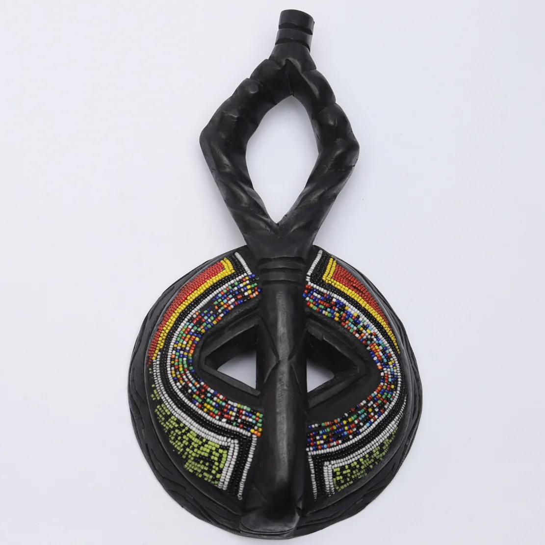 Bobo masks from Ghana, often made by the Bwa people (who are sometimes confused with the Bobo people), are primarily known for their use in rituals and ceremonies related to the spirit world and social order. These masks are crafted from wood, fiber, or leaves and feature distinctive designs and animal or geometric motifs. Key Characteristics of Bobo Masks: • Material: Bobo masks are crafted from materials like wood, fiber (often kenaf), and leaves. • Form: They can be face masks, helmet masks (covering the entire head), or plank masks (flat, extended forms). • Motifs: Masks often depict animals like monkeys, bush pigs, or birds, each carrying specific symbolic meanings. • Geometric Designs: Intricate geometric patterns are common, particularly on the front surface of the masks. • Coloration: Bright colors are often used, with black, white, and red being prominent. • Horns and Protrusions: Many masks feature prominent horns or other protruding elements. • Ritual Use: Bobo masks are central to initiation ceremonies, harvest rituals, funerals, and other important social and spiritual events. • Symbolic Meaning: They serve as a means of communication between the human and spirit realms, embodying deities and ancestral spirits. Distinguishing Features: • Animal Depictions: .Opens in new tab Specific animals like monkeys, bush pigs, and birds are common representations with specific symbolic meanings. • Geometric Designs: .Opens in new tab The intricate geometric patterns etched or painted on the masks are a hallmark of Bobo art. • Use of Fiber: .Opens in new tab The use of loose kenaf fibers as a mantle or covering for the mask is a characteristic feature, often associated with the Bobo Tere mask. Cultural Context: • Bwa People: .Opens in new tab The Bwa people, who are closely related to the Bobo, are known for their elaborate masks and masquerades. • Importance of Rituals: .Opens in new tab Bobo masks are integral to the Bwa’s worldview, connecting them to their ancestors, the spirit world, and the natural forces that govern their lives. • Initiation: .Opens in new tab Masks play a crucial role in the initiation of young men into adulthood, where they learn the meanings and responsibilities associated with the masks.