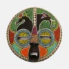 Ghanaian Round masks are typically made of wood and often feature a combination of geometric patterns, bold shapes, and symbolic elements. They are known for their association with well-being, harmony, and ancestral connections, often used in ceremonies and celebrations. The masks can vary in size and may incorporate intricate beadwork or other decorative elements like brass triangles. Here’s a more detailed look: Shape and Design: • Circular or round: The most defining characteristic is their rounded shape, which can vary in size and depth. • Geometric patterns: Many masks feature etched or carved geometric designs, sometimes arranged in a grid-like pattern. • Symbolic features: They often incorporate elements like slit eyes, protruding tongues, or abstracted facial features, each carrying specific symbolic meaning. Materials and Decoration: • Wood: The masks are primarily crafted from wood. • Beadwork: Some masks, particularly those from the Ashanti region, feature intricate beadwork in various colors. • Brass and other embellishments: Brass triangles, or other decorative elements, may also be incorporated. Cultural Significance: • Ceremonial use: Round masks are frequently used in ceremonies, festivals, and masquerade performances. • Spiritual connection: They are believed to facilitate communication with ancestors or spirits, bridging the gap between the physical and spiritual realms. • Symbolism of well-being: The masks often represent positive concepts like well-being, harmony, and prosperity. • Ashanti and Baule influence: Some masks, like those from the Ashanti region, showcase Baule sculpture styles and symbolism related to beauty and refinement