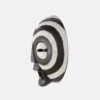 Ghanaian Round masks are typically made of wood and often feature a combination of geometric patterns, bold shapes, and symbolic elements. They are known for their association with well-being, harmony, and ancestral connections, often used in ceremonies and celebrations. The masks can vary in size and may incorporate intricate beadwork or other decorative elements like brass triangles. Here’s a more detailed look: Shape and Design: • Circular or round: The most defining characteristic is their rounded shape, which can vary in size and depth. • Geometric patterns: Many masks feature etched or carved geometric designs, sometimes arranged in a grid-like pattern. • Symbolic features: They often incorporate elements like slit eyes, protruding tongues, or abstracted facial features, each carrying specific symbolic meaning. Materials and Decoration: • Wood: The masks are primarily crafted from wood. • Beadwork: Some masks, particularly those from the Ashanti region, feature intricate beadwork in various colors. • Brass and other embellishments: Brass triangles, or other decorative elements, may also be incorporated. Cultural Significance: • Ceremonial use: Round masks are frequently used in ceremonies, festivals, and masquerade performances. • Spiritual connection: They are believed to facilitate communication with ancestors or spirits, bridging the gap between the physical and spiritual realms. • Symbolism of well-being: The masks often represent positive concepts like well-being, harmony, and prosperity. • Ashanti and Baule influence: Some masks, like those from the Ashanti region, showcase Baule sculpture styles and symbolism related to beauty and refinement