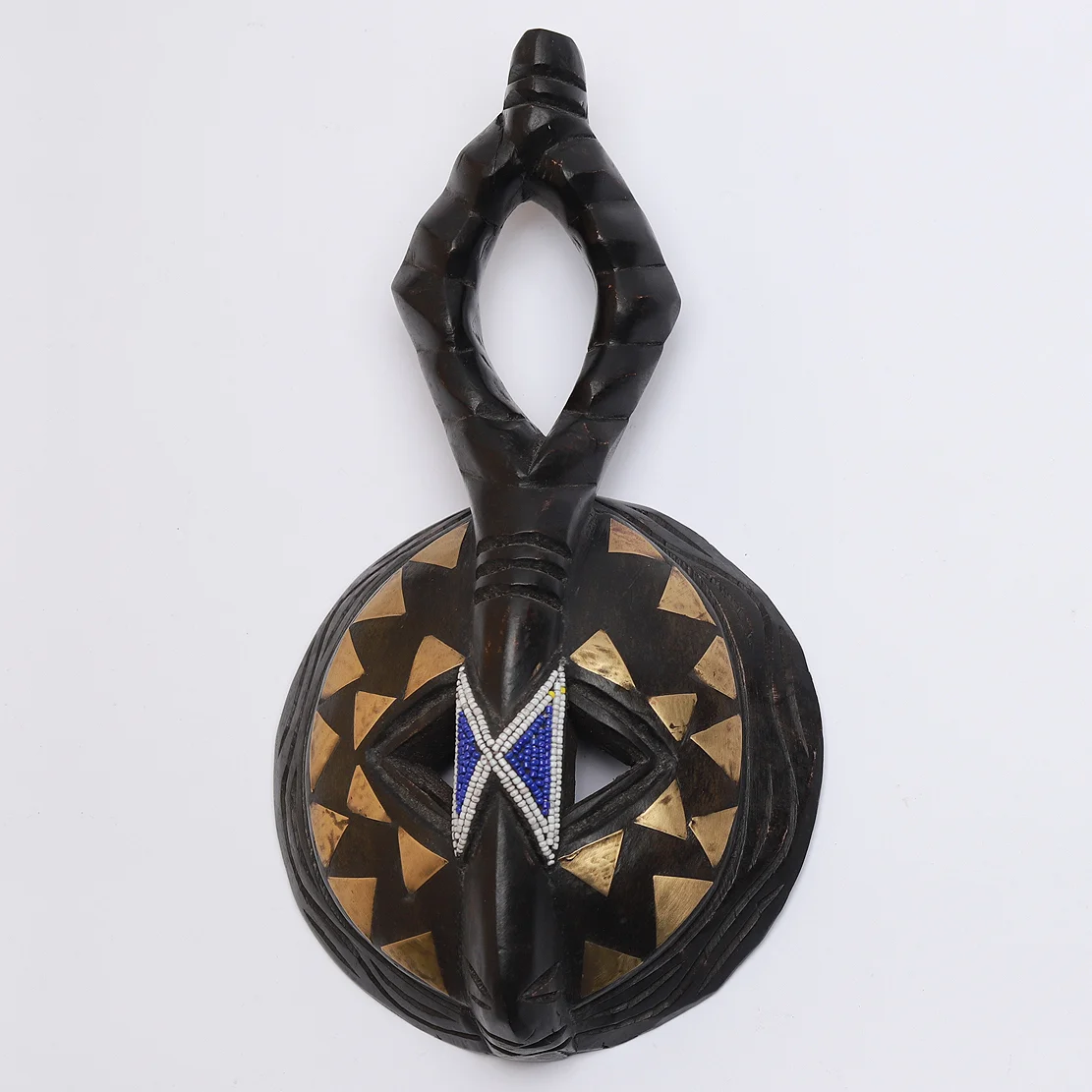 Bobo masks from Ghana, often made by the Bwa people (who are sometimes confused with the Bobo people), are primarily known for their use in rituals and ceremonies related to the spirit world and social order. These masks are crafted from wood, fiber, or leaves and feature distinctive designs and animal or geometric motifs. Key Characteristics of Bobo Masks: • Material: Bobo masks are crafted from materials like wood, fiber (often kenaf), and leaves. • Form: They can be face masks, helmet masks (covering the entire head), or plank masks (flat, extended forms). • Motifs: Masks often depict animals like monkeys, bush pigs, or birds, each carrying specific symbolic meanings. • Geometric Designs: Intricate geometric patterns are common, particularly on the front surface of the masks. • Coloration: Bright colors are often used, with black, white, and red being prominent. • Horns and Protrusions: Many masks feature prominent horns or other protruding elements. • Ritual Use: Bobo masks are central to initiation ceremonies, harvest rituals, funerals, and other important social and spiritual events. • Symbolic Meaning: They serve as a means of communication between the human and spirit realms, embodying deities and ancestral spirits. Distinguishing Features: • Animal Depictions: .Opens in new tab Specific animals like monkeys, bush pigs, and birds are common representations with specific symbolic meanings. • Geometric Designs: .Opens in new tab The intricate geometric patterns etched or painted on the masks are a hallmark of Bobo art. • Use of Fiber: .Opens in new tab The use of loose kenaf fibers as a mantle or covering for the mask is a characteristic feature, often associated with the Bobo Tere mask. Cultural Context: • Bwa People: .Opens in new tab The Bwa people, who are closely related to the Bobo, are known for their elaborate masks and masquerades. • Importance of Rituals: .Opens in new tab Bobo masks are integral to the Bwa’s worldview, connecting them to their ancestors, the spirit world, and the natural forces that govern their lives. • Initiation: .Opens in new tab Masks play a crucial role in the initiation of young men into adulthood, where they learn the meanings and responsibilities associated with the masks.