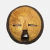 Ghanaian Round masks are typically made of wood and often feature a combination of geometric patterns, bold shapes, and symbolic elements. They are known for their association with well-being, harmony, and ancestral connections, often used in ceremonies and celebrations. The masks can vary in size and may incorporate intricate beadwork or other decorative elements like brass triangles. Here’s a more detailed look: Shape and Design: • Circular or round: The most defining characteristic is their rounded shape, which can vary in size and depth. • Geometric patterns: Many masks feature etched or carved geometric designs, sometimes arranged in a grid-like pattern. • Symbolic features: They often incorporate elements like slit eyes, protruding tongues, or abstracted facial features, each carrying specific symbolic meaning. Materials and Decoration: • Wood: The masks are primarily crafted from wood. • Beadwork: Some masks, particularly those from the Ashanti region, feature intricate beadwork in various colors. • Brass and other embellishments: Brass triangles, or other decorative elements, may also be incorporated. Cultural Significance: • Ceremonial use: Round masks are frequently used in ceremonies, festivals, and masquerade performances. • Spiritual connection: They are believed to facilitate communication with ancestors or spirits, bridging the gap between the physical and spiritual realms. • Symbolism of well-being: The masks often represent positive concepts like well-being, harmony, and prosperity. • Ashanti and Baule influence: Some masks, like those from the Ashanti region, showcase Baule sculpture styles and symbolism related to beauty and refinement