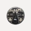 Ghanaian Round masks are typically made of wood and often feature a combination of geometric patterns, bold shapes, and symbolic elements. They are known for their association with well-being, harmony, and ancestral connections, often used in ceremonies and celebrations. The masks can vary in size and may incorporate intricate beadwork or other decorative elements like brass triangles. Here’s a more detailed look: Shape and Design: • Circular or round: The most defining characteristic is their rounded shape, which can vary in size and depth. • Geometric patterns: Many masks feature etched or carved geometric designs, sometimes arranged in a grid-like pattern. • Symbolic features: They often incorporate elements like slit eyes, protruding tongues, or abstracted facial features, each carrying specific symbolic meaning. Materials and Decoration: • Wood: The masks are primarily crafted from wood. • Beadwork: Some masks, particularly those from the Ashanti region, feature intricate beadwork in various colors. • Brass and other embellishments: Brass triangles, or other decorative elements, may also be incorporated. Cultural Significance: • Ceremonial use: Round masks are frequently used in ceremonies, festivals, and masquerade performances. • Spiritual connection: They are believed to facilitate communication with ancestors or spirits, bridging the gap between the physical and spiritual realms. • Symbolism of well-being: The masks often represent positive concepts like well-being, harmony, and prosperity. • Ashanti and Baule influence: Some masks, like those from the Ashanti region, showcase Baule sculpture styles and symbolism related to beauty and refinement
