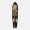 Senufo masks from Ghana, especially those used by the Poro society, are intricately crafted wooden masks employed in important ceremonies such as funerals and initiation rites. These masks are made in two primary forms: the smaller, feminine-style kpeliye’e face masks and the larger, more elaborate kponyugu or “firespitter” helmet masks. Details: Kpeliye’e Masks These are small, oval-shaped face masks that exhibit refined, feminine aesthetics. They often feature symmetrical designs, geometric projections, smooth contours, and raised scarification patterns. Though feminine in appearance, they are worn by men and primarily serve to honor deceased Senufo elders during ceremonial rituals. Kponyugu (Firespitter) Masks These are larger, full-head helmet masks with aggressive and complex compositions, combining elements from multiple animals—such as buffalo, crocodiles, antelope, warthogs, birds, and sometimes chameleons. Their intimidating features are meant to scare away evil spirits and protect the deceased’s soul during funerals. Cultural Significance: Ceremonial Function Both mask types play essential roles in the secretive Poro society, where they are used in spiritual and social rituals like initiations and funerals. They are kept hidden from those not initiated into the society and are revealed only during specific sacred ceremonies. Symbolism and Belief These masks are deeply symbolic, rooted in Senufo spiritual beliefs and cosmology. They reflect themes of nature, ancestral power, and the animal world, with each component of the mask carrying a specific meaning tied to mythology or traditional knowledge. Artistry and Materials The masks are hand-carved with exceptional attention to detail, using a blend of materials such as wood, horn, cotton cloth, feathers, raffia fibers, and occasionally items used in ritual sacrifices. Each mask is a unique work of art, reflecting both the spiritual and aesthetic values of the Senufo people.