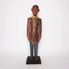 Carved Wooden Colon – A Cultural Fusion of Art and Colonial History Carved wooden colons, also known as “colon statues,” are distinctive anthropomorphic sculptures that originated in West Africa—especially in the Ivory Coast—during the colonial era. These figures are typically handcrafted from wood and brightly painted, portraying Europeans such as colonial officers, missionaries, or civil servants. They are notable for their unique blend of traditional African carving styles and European themes, making them powerful symbols of cultural intersection. Defining Characteristics: Depiction of Europeans: Colon statues often feature European subjects dressed in formal colonial attire, such as military uniforms, suits, hats, or clerical garments. These figures are portrayed with exaggerated or stylized features, highlighting the contrast between cultures. Stylistic Fusion: The artistry combines African sculptural techniques—like bold shapes, simplified forms, and symbolic proportions—with European details in clothing and posture, creating a visually striking hybrid style. Materials and Finish: Typically carved from hardwood and finished with vibrant, glossy paint, the figures are made to be both eye-catching and durable. Their colorful appearance adds a whimsical or satirical tone to the serious historical themes they represent. Cultural and Historical Significance: Commentary on Colonialism: These statues are seen by many scholars and collectors as a form of visual commentary or satire. They reflect how African artists perceived and interpreted colonial figures, sometimes idealizing, sometimes mocking, or simply documenting them. Symbol of Cultural Hybridity: Colon statues embody the blending of African traditions and foreign influences. They illustrate how African societies adapted to and represented the presence of European powers. Context of Use: While some colon figures were created as functional art for local rituals or as household items, many were produced for trade and tourism. Their popularity grew as collectible souvenirs that offered a uniquely African perspective on colonial presence. Legacy and Art Market: Today, carved wooden colons are appreciated not only for their historical significance but also for their artistic and cultural value. They are featured in art galleries, museums, and private collections around the world, celebrated as enduring artifacts of colonial-era West Africa and as bold expressions of resistance, adaptation, and artistic innovation.