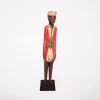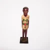 Carved Wooden Colon – A Cultural Fusion of Art and Colonial History Carved wooden colons, also known as “colon statues,” are distinctive anthropomorphic sculptures that originated in West Africa—especially in the Ivory Coast—during the colonial era. These figures are typically handcrafted from wood and brightly painted, portraying Europeans such as colonial officers, missionaries, or civil servants. They are notable for their unique blend of traditional African carving styles and European themes, making them powerful symbols of cultural intersection. Defining Characteristics: Depiction of Europeans: Colon statues often feature European subjects dressed in formal colonial attire, such as military uniforms, suits, hats, or clerical garments. These figures are portrayed with exaggerated or stylized features, highlighting the contrast between cultures. Stylistic Fusion: The artistry combines African sculptural techniques—like bold shapes, simplified forms, and symbolic proportions—with European details in clothing and posture, creating a visually striking hybrid style. Materials and Finish: Typically carved from hardwood and finished with vibrant, glossy paint, the figures are made to be both eye-catching and durable. Their colorful appearance adds a whimsical or satirical tone to the serious historical themes they represent. Cultural and Historical Significance: Commentary on Colonialism: These statues are seen by many scholars and collectors as a form of visual commentary or satire. They reflect how African artists perceived and interpreted colonial figures, sometimes idealizing, sometimes mocking, or simply documenting them. Symbol of Cultural Hybridity: Colon statues embody the blending of African traditions and foreign influences. They illustrate how African societies adapted to and represented the presence of European powers. Context of Use: While some colon figures were created as functional art for local rituals or as household items, many were produced for trade and tourism. Their popularity grew as collectible souvenirs that offered a uniquely African perspective on colonial presence. Legacy and Art Market: Today, carved wooden colons are appreciated not only for their historical significance but also for their artistic and cultural value. They are featured in art galleries, museums, and private collections around the world, celebrated as enduring artifacts of colonial-era West Africa and as bold expressions of resistance, adaptation, and artistic innovation.