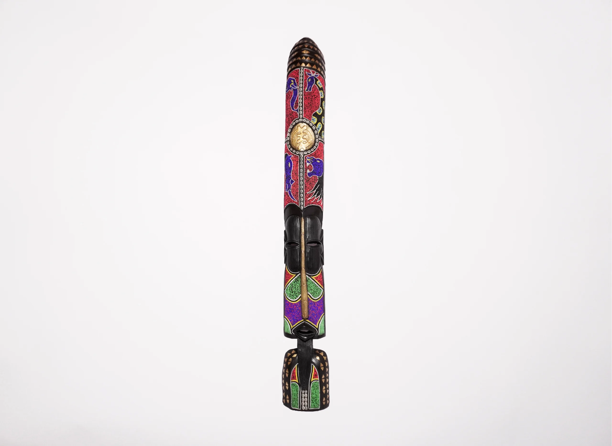Fulani Masks: Traditional Long Masks from West Africa Fulani masks, also known as traditional long masks, originate from the Fulani people of West Africa. Rather than representing a single standardized style, these masks encompass a variety of forms used in different cultural ceremonies and rituals. They often embody the Fulani ideals of beauty and identity and may play significant roles in social events such as marriage proposals or rites of passage. Key Features and Cultural Meaning: Emphasis on Beauty: Fulani masks often highlight aesthetic ideals, especially feminine beauty. They typically feature stylized, graceful forms, including delicate facial features that reflect the Fulani appreciation for elegance and charm. Ceremonial Roles: These masks are used in diverse cultural settings, including marriage rituals, initiation ceremonies, and social festivities. In some cases, the mask symbolizes approval in marriage proposals or serves to honor important life transitions. Craftsmanship and Materials: Traditionally carved from wood, Fulani masks may be decorated with materials such as beads, polished aluminum, fabric, or cowrie shells. The artistry reflects the Fulani’s refined sense of design and symbolic expression. Spiritual and Social Symbolism: Fulani masks are more than decorative objects—they often represent spiritual entities, ancestral spirits, or totemic animals. Some also signify a person’s status, role, or lineage within the community. Embodiment through Performance: During performances, the person wearing the mask is believed to embody the spirit or identity the mask represents. The transformation is deepened through the use of dance, chants, and music, creating a powerful cultural and spiritual experience.