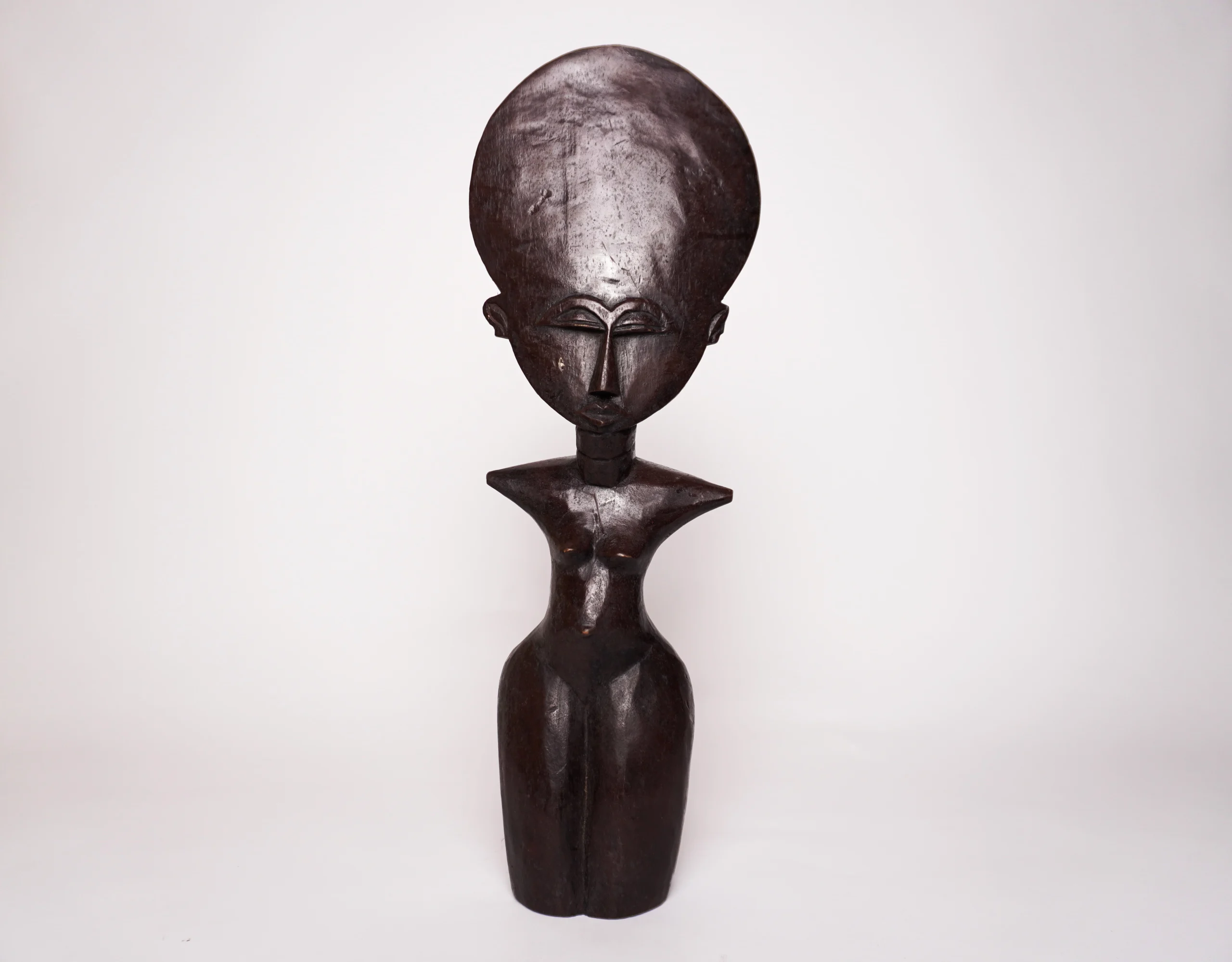 HALF BODY DOLL In Ghana, traditional sculpture—often centered on the head and torso—is a powerful form of cultural and artistic expression. These figures, sometimes referred to as “half body statues,” reflect deep symbolic meaning rather than striving for anatomical precision. Key Characteristics of Ghanaian Half-Body Sculptures: ⦁ Emphasis on the Head: The head is typically rendered disproportionately large, symbolizing its importance as the center of wisdom, vitality, and survival. ⦁ Simplified Limbs: Limbs such as arms and legs, if included, are often minimally detailed, drawing focus instead to the head and torso. ⦁ Essential Form Over Realism: These sculptures aim to capture the spiritual or symbolic essence of the subject rather than depict a realistic human form. ⦁ Proportional Symbolism: Exaggerated or minimized body parts are used intentionally to convey their cultural and spiritual significance. ⦁ Materials Used: While wood is the most common medium, artisans also work with clay, bronze, and stone to bring these figures to life. ⦁ Traditional Craftsmanship: Artists typically use tools like axes and adzes for carving, complemented by finishing techniques such as polishing, charring, or painting to enhance the final piece. Examples: ⦁ Akua’ba Figures: These stylized fertility dolls feature cylindrical torsos, wide horizontal arms, and large circular heads, often resting on a flat base instead of legs. They symbolize fertility and are traditionally used by women hoping to conceive. ⦁ Nsodie (Memorial Heads): Often made of terracotta, these busts commemorate the deceased and range from realistic portraits to abstract representations. They serve as vessels of remembrance and ancestral reverence. Cultural Significance: ⦁ Preserving Heritage: These sculptures are a vital part of Ghana’s cultural heritage, passed down through generations as symbols of identity and tradition. ⦁ Spiritual and Social Roles: Half-body figures are used in rituals related to fertility, ancestor worship, mourning, and social rites, making them essential elements in Ghanaian religious and communal life. ⦁ Artistic Expression: Ghanaian sculptors blend traditional techniques with cultural storytelling, producing works that are both meaningful and visually compelling. Note: While “half body statue” is not a widely used formal term, it effectively describes a category of Ghanaian sculptures that emphasize the head and torso as the primary elements of expression and symbolism.