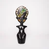 HALF BODY DOLL In Ghana, traditional sculpture—often centered on the head and torso—is a powerful form of cultural and artistic expression. These figures, sometimes referred to as “half body statues,” reflect deep symbolic meaning rather than striving for anatomical precision. Key Characteristics of Ghanaian Half-Body Sculptures: ⦁ Emphasis on the Head: The head is typically rendered disproportionately large, symbolizing its importance as the center of wisdom, vitality, and survival. ⦁ Simplified Limbs: Limbs such as arms and legs, if included, are often minimally detailed, drawing focus instead to the head and torso. ⦁ Essential Form Over Realism: These sculptures aim to capture the spiritual or symbolic essence of the subject rather than depict a realistic human form. ⦁ Proportional Symbolism: Exaggerated or minimized body parts are used intentionally to convey their cultural and spiritual significance. ⦁ Materials Used: While wood is the most common medium, artisans also work with clay, bronze, and stone to bring these figures to life. ⦁ Traditional Craftsmanship: Artists typically use tools like axes and adzes for carving, complemented by finishing techniques such as polishing, charring, or painting to enhance the final piece. Examples: ⦁ Akua’ba Figures: These stylized fertility dolls feature cylindrical torsos, wide horizontal arms, and large circular heads, often resting on a flat base instead of legs. They symbolize fertility and are traditionally used by women hoping to conceive. ⦁ Nsodie (Memorial Heads): Often made of terracotta, these busts commemorate the deceased and range from realistic portraits to abstract representations. They serve as vessels of remembrance and ancestral reverence. Cultural Significance: ⦁ Preserving Heritage: These sculptures are a vital part of Ghana’s cultural heritage, passed down through generations as symbols of identity and tradition. ⦁ Spiritual and Social Roles: Half-body figures are used in rituals related to fertility, ancestor worship, mourning, and social rites, making them essential elements in Ghanaian religious and communal life. ⦁ Artistic Expression: Ghanaian sculptors blend traditional techniques with cultural storytelling, producing works that are both meaningful and visually compelling. Note: While “half body statue” is not a widely used formal term, it effectively describes a category of Ghanaian sculptures that emphasize the head and torso as the primary elements of expression and symbolism.