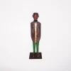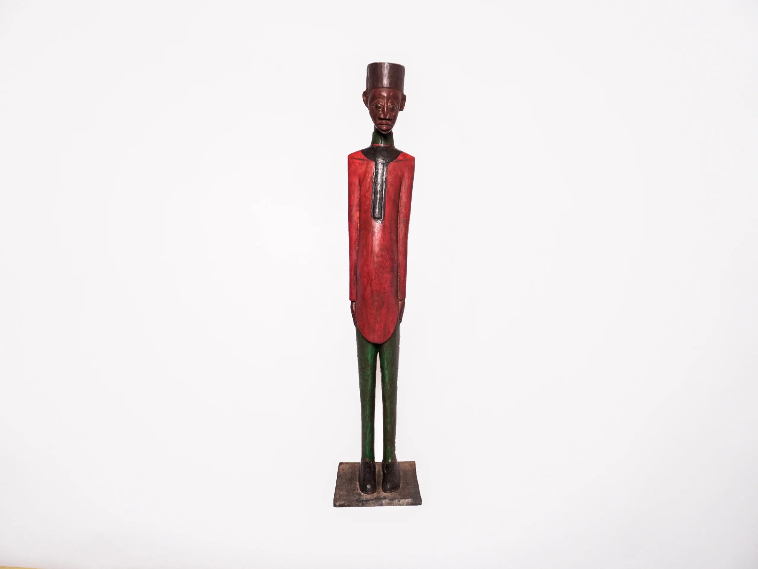 Carved Wooden Colon – A Cultural Fusion of Art and Colonial History Carved wooden colons, also known as “colon statues,” are distinctive anthropomorphic sculptures that originated in West Africa—especially in the Ivory Coast—during the colonial era. These figures are typically handcrafted from wood and brightly painted, portraying Europeans such as colonial officers, missionaries, or civil servants. They are notable for their unique blend of traditional African carving styles and European themes, making them powerful symbols of cultural intersection. Defining Characteristics: Depiction of Europeans: Colon statues often feature European subjects dressed in formal colonial attire, such as military uniforms, suits, hats, or clerical garments. These figures are portrayed with exaggerated or stylized features, highlighting the contrast between cultures. Stylistic Fusion: The artistry combines African sculptural techniques—like bold shapes, simplified forms, and symbolic proportions—with European details in clothing and posture, creating a visually striking hybrid style. Materials and Finish: Typically carved from hardwood and finished with vibrant, glossy paint, the figures are made to be both eye-catching and durable. Their colorful appearance adds a whimsical or satirical tone to the serious historical themes they represent. Cultural and Historical Significance: Commentary on Colonialism: These statues are seen by many scholars and collectors as a form of visual commentary or satire. They reflect how African artists perceived and interpreted colonial figures, sometimes idealizing, sometimes mocking, or simply documenting them. Symbol of Cultural Hybridity: Colon statues embody the blending of African traditions and foreign influences. They illustrate how African societies adapted to and represented the presence of European powers. Context of Use: While some colon figures were created as functional art for local rituals or as household items, many were produced for trade and tourism. Their popularity grew as collectible souvenirs that offered a uniquely African perspective on colonial presence. Legacy and Art Market: Today, carved wooden colons are appreciated not only for their historical significance but also for their artistic and cultural value. They are featured in art galleries, museums, and private collections around the world, celebrated as enduring artifacts of colonial-era West Africa and as bold expressions of resistance, adaptation, and artistic innovation.