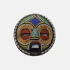 Ghanaian Round masks are typically made of wood and often feature a combination of geometric patterns, bold shapes, and symbolic elements. They are known for their association with well-being, harmony, and ancestral connections, often used in ceremonies and celebrations. The masks can vary in size and may incorporate intricate beadwork or other decorative elements like brass triangles. Here’s a more detailed look: Shape and Design: • Circular or round: The most defining characteristic is their rounded shape, which can vary in size and depth. • Geometric patterns: Many masks feature etched or carved geometric designs, sometimes arranged in a grid-like pattern. • Symbolic features: They often incorporate elements like slit eyes, protruding tongues, or abstracted facial features, each carrying specific symbolic meaning. Materials and Decoration: • Wood: The masks are primarily crafted from wood. • Beadwork: Some masks, particularly those from the Ashanti region, feature intricate beadwork in various colors. • Brass and other embellishments: Brass triangles, or other decorative elements, may also be incorporated. Cultural Significance: • Ceremonial use: Round masks are frequently used in ceremonies, festivals, and masquerade performances. • Spiritual connection: They are believed to facilitate communication with ancestors or spirits, bridging the gap between the physical and spiritual realms. • Symbolism of well-being: The masks often represent positive concepts like well-being, harmony, and prosperity. • Ashanti and Baule influence: Some masks, like those from the Ashanti region, showcase Baule sculpture styles and symbolism related to beauty and refinement