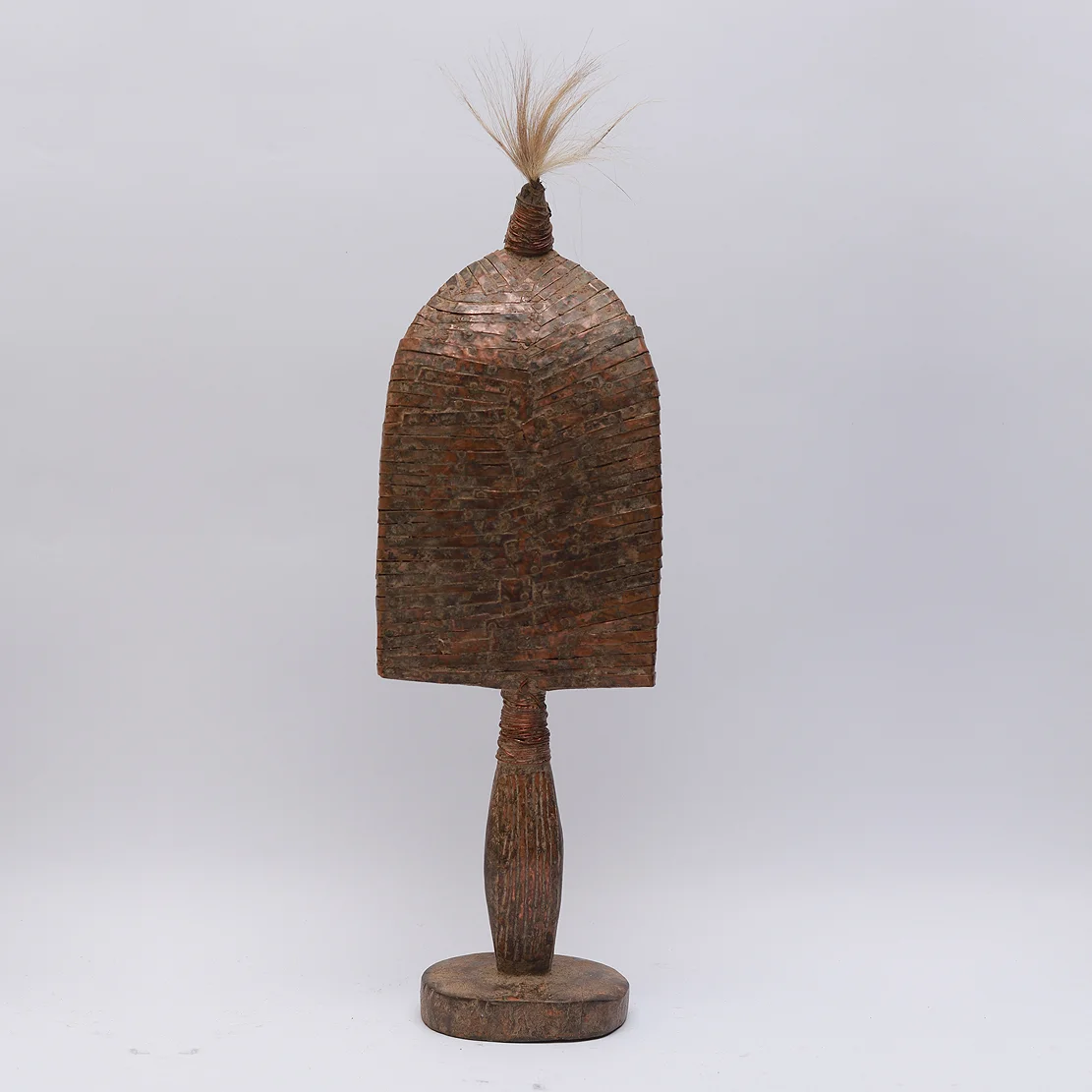 Ghanaian Bakuta Masks: Design and Cultural Significance Bakuta masks from Ghana are ceremonial artifacts traditionally handcrafted by the Bakuta people. These masks are primarily made from sese wood, a commonly used hardwood, and are typically stained black and polished to achieve a refined, smooth finish. They are known for their symbolic meaning and intricate design, playing an essential role in rituals and celebratory events. Distinctive Features: Material Composition: The masks are carved from sese wood and embellished with brass accents and colorful beadwork in hues of blue, red, and white. Visual Style: Many masks represent elderly men with small beards, symbolizing strength and wisdom. Others depict women with prominent foreheads and elaborate hairstyles, also signifying power and resilience. Symbolic Meaning: These masks are closely associated with leadership and kingship, often used to honor the king’s enduring reign and influence. They reflect themes of strength, authority, and ancestral reverence. Cultural Connection: The Bakota people, known for their reliquary guardian figures made from brass and copper, are part of a sacred religious tradition called Bwete. The masks share aesthetic and spiritual connections with these relics. Name Origin: Although the term “Bakota” has unclear origins, it is thought to relate to the word “kota,” meaning “to bind” or “to connect,” which highlights the values of unity and spiritual linkage. Purpose and Use: Bakuta masks are worn during traditional festivals, royal ceremonies, and spiritual rituals. They symbolize a ruler’s authority and are often used in rites that honor kingship and the ancestral lineage. In spiritual contexts, they are believed to offer protection, foster communication with the spirit world, and facilitate healing or initiation rites. The act of wearing the mask is viewed as a transformative experience, allowing the wearer to embody spiritual forces or ancestral spirits.